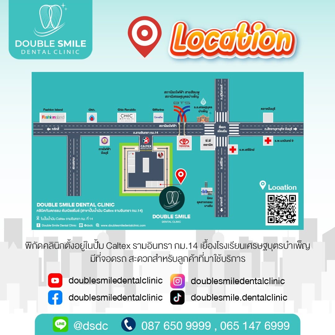 คลินิกทันตกรรมดับเบิลสไมล์ (ใน Caltex station รามอินทรา กม. ที่ 14 เยื้อง รร.เศรษฐบุตรบำเพ็ญ)
